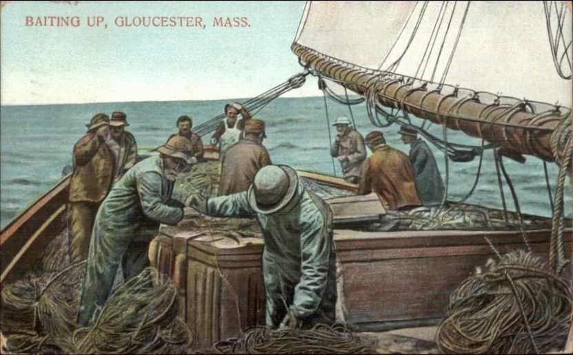 Gloucester MA Fishermen Baiting Up c1910 Postcard