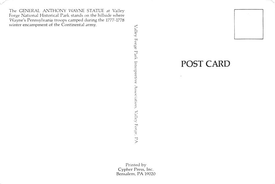 Gneral Anthony Wayne Statue - Grade: 2 Category: Continental Size Postcard, Approx 4 in x 6 in (10 cm x 15.25 cm) Product Size: Continental size: 4X6 inches (10.5 cm x 15 cm) Grading Scale: Grade 1 = Perfect c ... Read More