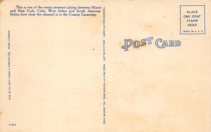 Going to Sea Ship on the Ocean Miami FL Postcard - Unused Grade: 1 Size: R - Regular size: Approx 3 1/2 X 5 1/2 inch (9 cm X 14 cm) Grading Scale: Grade 1 = Perfect corners Grade 2 = Very Minimal corner wear, ... Read More