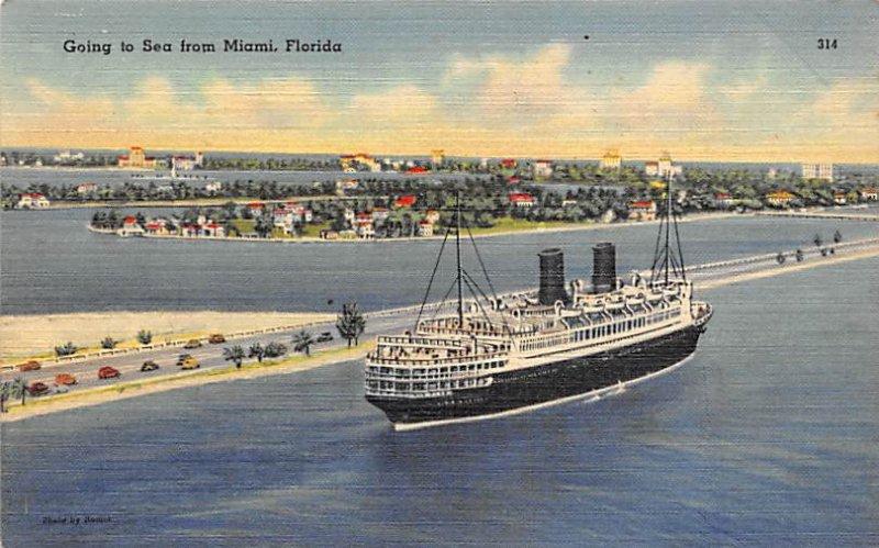Going to Sea Ship on the Ocean Miami FL Postcard - Unused