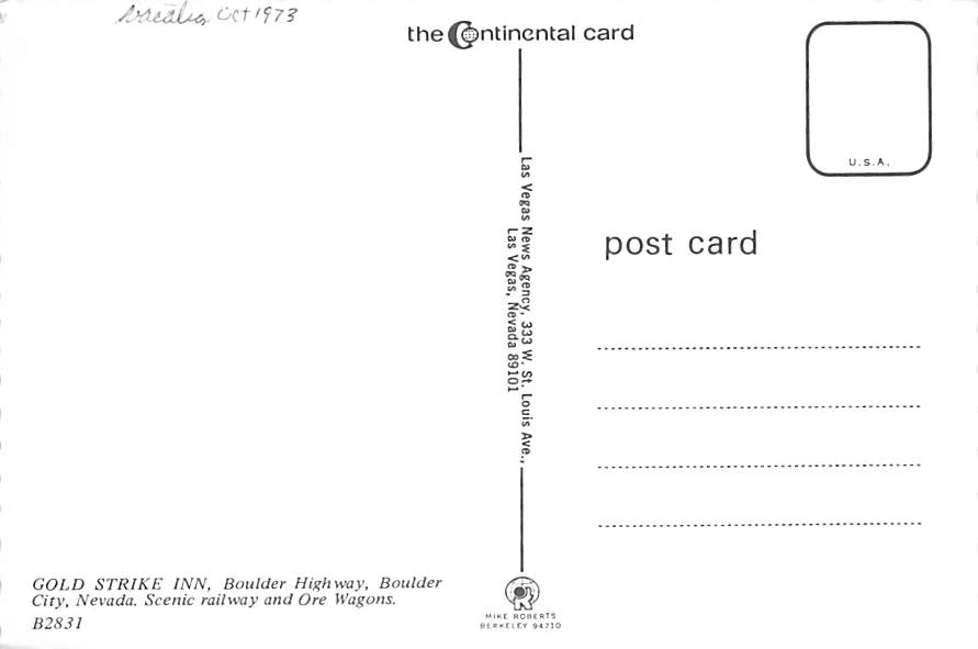 Gold Strike Inn - Nevada Grade: 1 Category: Continental Size Postcard, Approx 4 in x 6 in (10 cm x 15.25 cm) Product Size: Continental size: 4X6 inches (10.5 cm x 15 cm) Grading Scale: Grade 1 = Perfect corner ... Read More