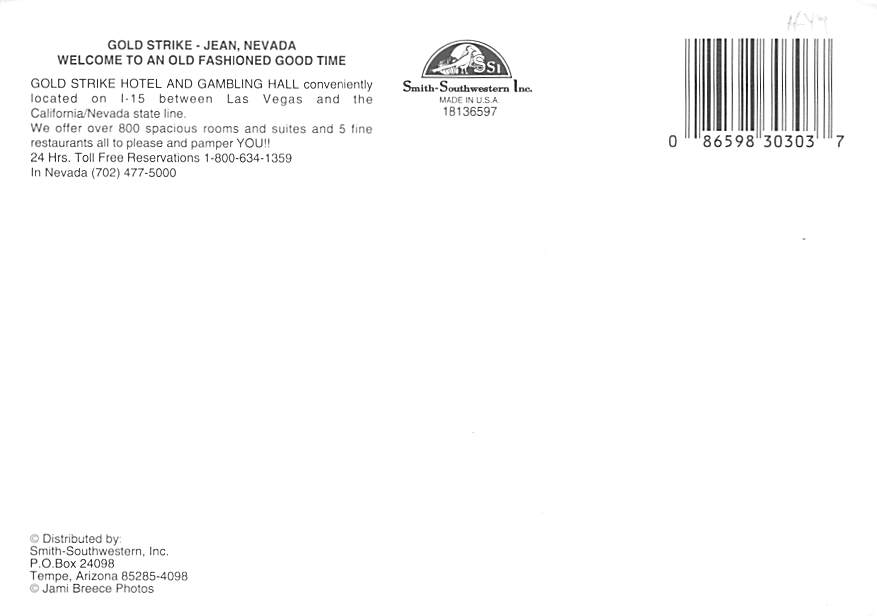 Gold Strike - Jean, Nevada Grade: 1 Category: Continental Size Postcard, Approx 4 in x 6 in (10 cm x 15.25 cm) Product Size: Continental size: 4X6 inches (10.5 cm x 15 cm) Grading Scale: Grade 1 = Perfect corn ... Read More