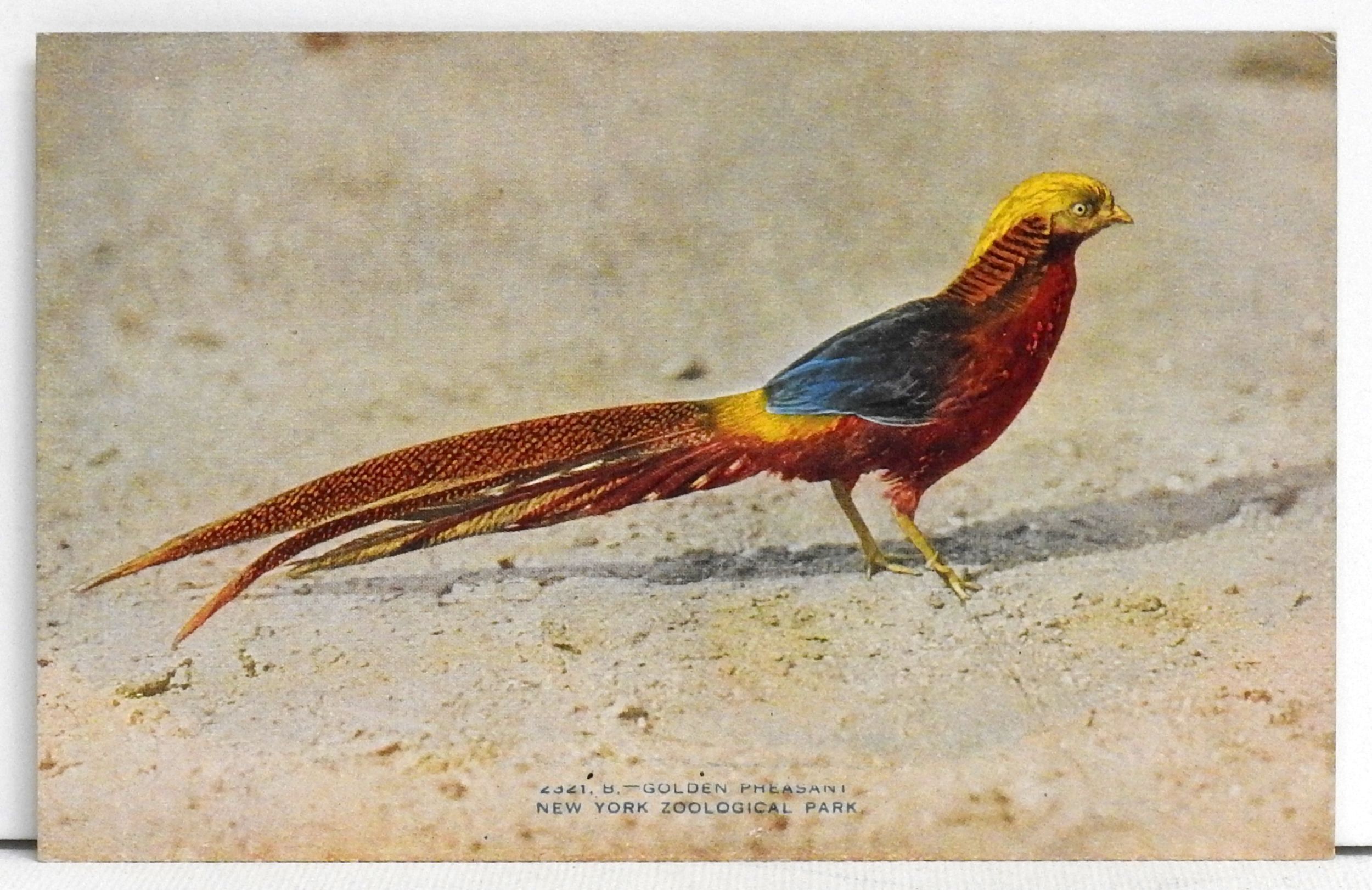 Lithograph Postcard; Golden Pheasant; New York Zoological Park; Birds; Trace of wear to one corner. Very clean.Seller Information