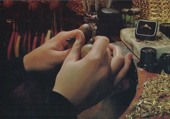 uk55 A superb 1980s postcard of a goldsmith at work inside Jerry Goldsmiths Workshop unused and mint