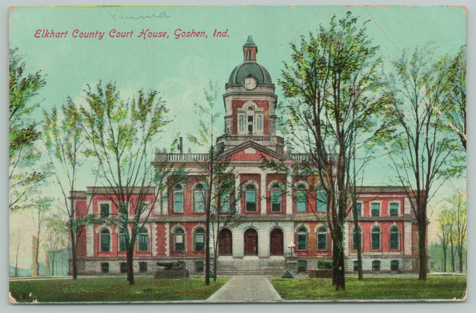 Goshen Indiana~Elkhart County Court House~c1910 Postcard