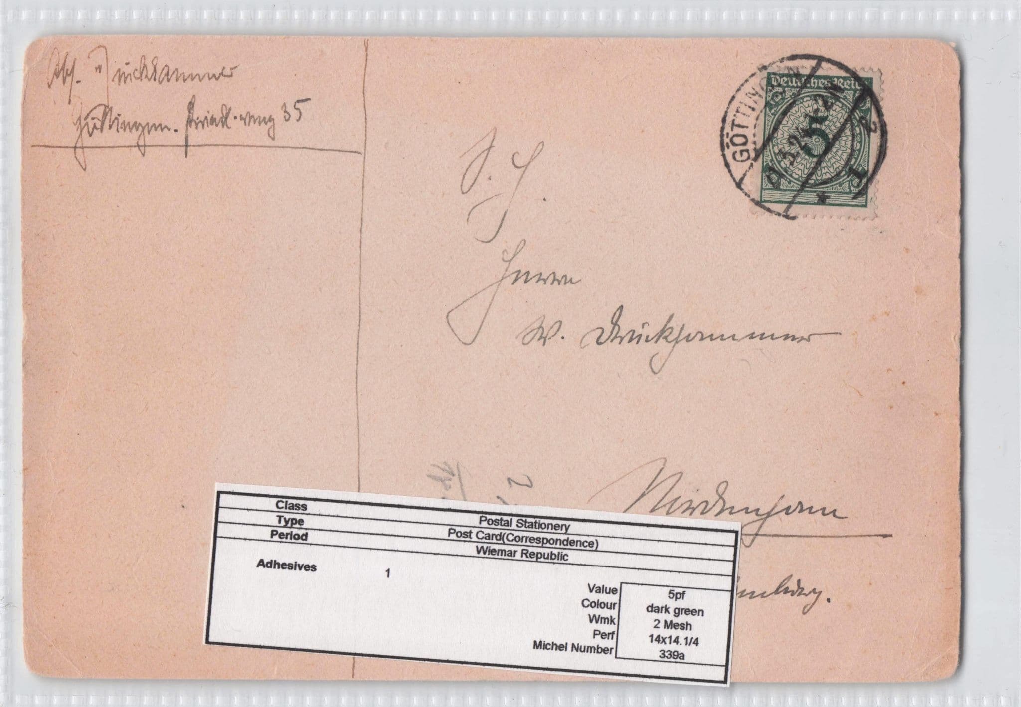 Gottingen Weimar Republic German Postal Stationary Old Postcard
