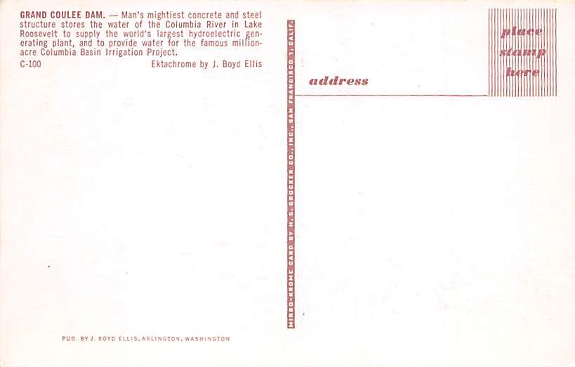 Grand Coulee Dam USA Grade: 2 Size: Regular Size Postcard - approximately 3 1/2 inch x 5 1/2 inch (9 CM x 14 CM) Grading Scale: Grade 1 = Perfect corners Grade 2 = Very Minimal corner wear, no creases Grade 3 = ... Read More