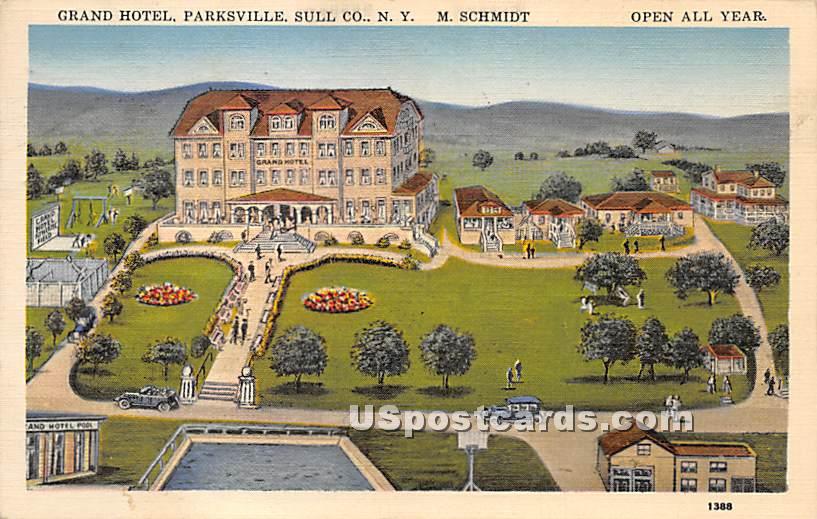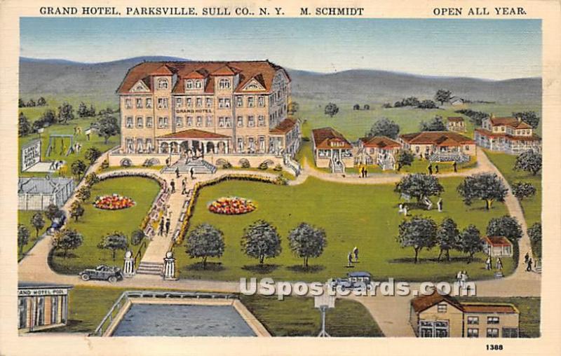 Grand Hotel M Schmidt Parksville NY Year Date of Postcard, or Postal Used / Year Used: 1939 Grade: 1 Product Size: R Product Type: 2 Grading Scale: Grade 1 = Perfect corners Grade 2 = Very Minimal corner wear ... Read More