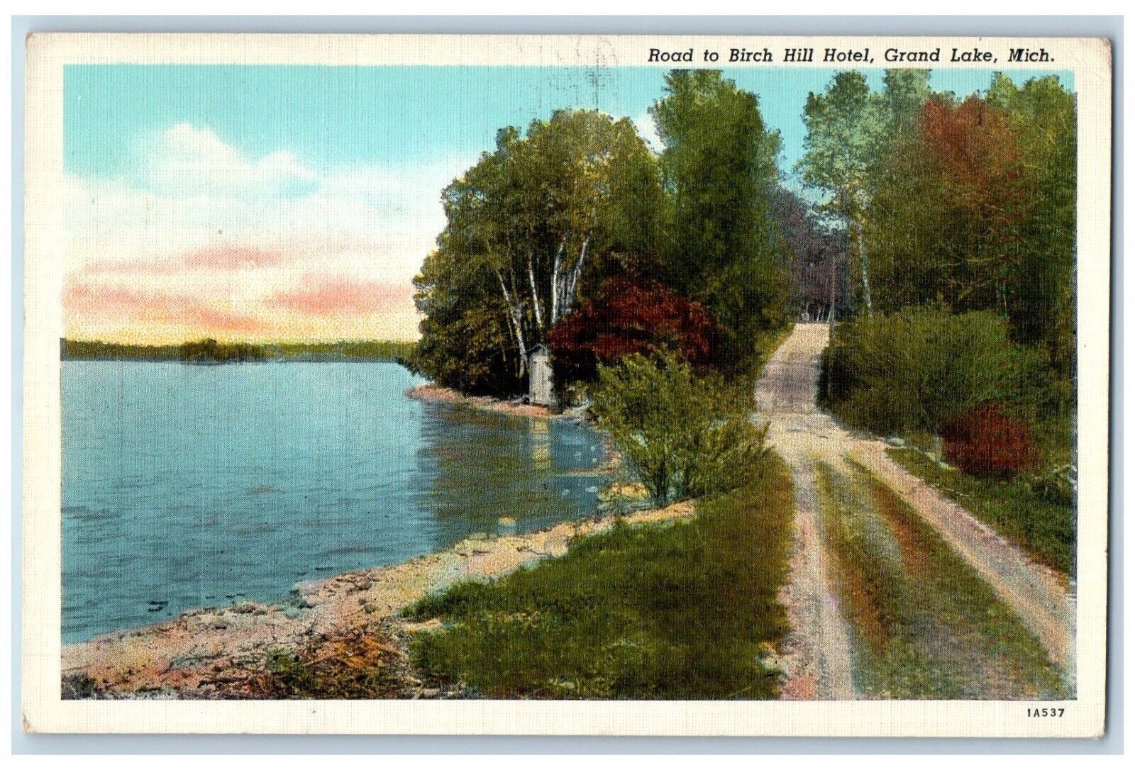 Grand Lake Michigan Postcard Road Birch Hill Hotel Exterior 1938 Vintage Antique