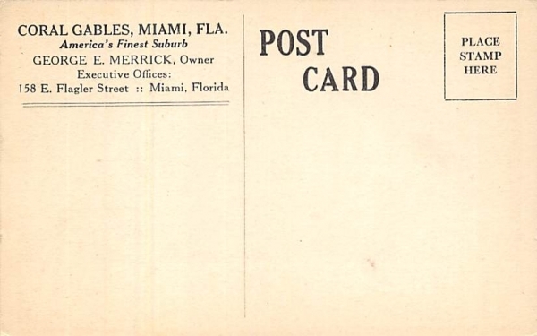 Granda Entrance and Boulevard Miami, Florida Postcard - Unused Grade: 3 Size: R - Regular size: Approx 3 1/2 X 5 1/2 inch (9 cm X 14 cm) Grading Scale: Grade 1 = Perfect corners Grade 2 = Very Minimal corner w ... Read More