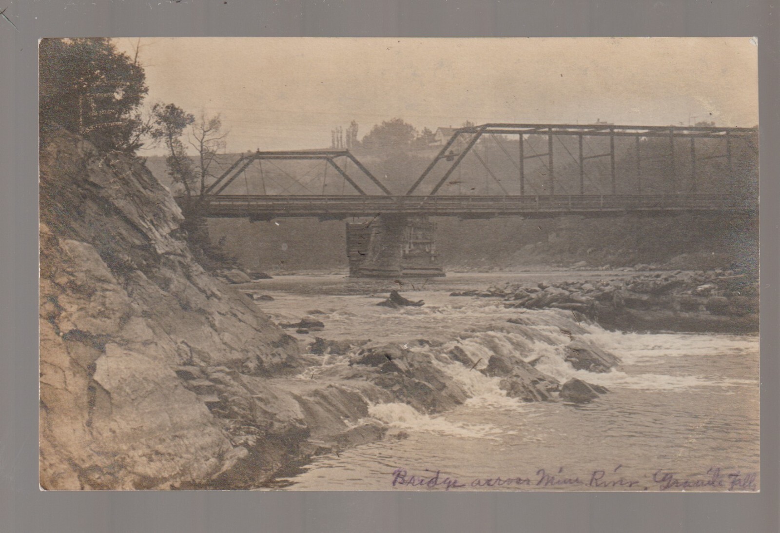 Here is a nice REAL PHOTO postcard view showing BRIDGE ACROSS MINN. RIVER GRANITE FALLS on the front addressed from there in 1911...it is an AZO card. It is in VERY GOOD CONDITION with light wear, smudging/SILVERING ... Read More