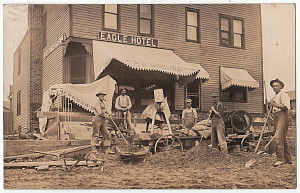 Granton WI Real Photo Postcard Cement Crew By Eagle Hotel