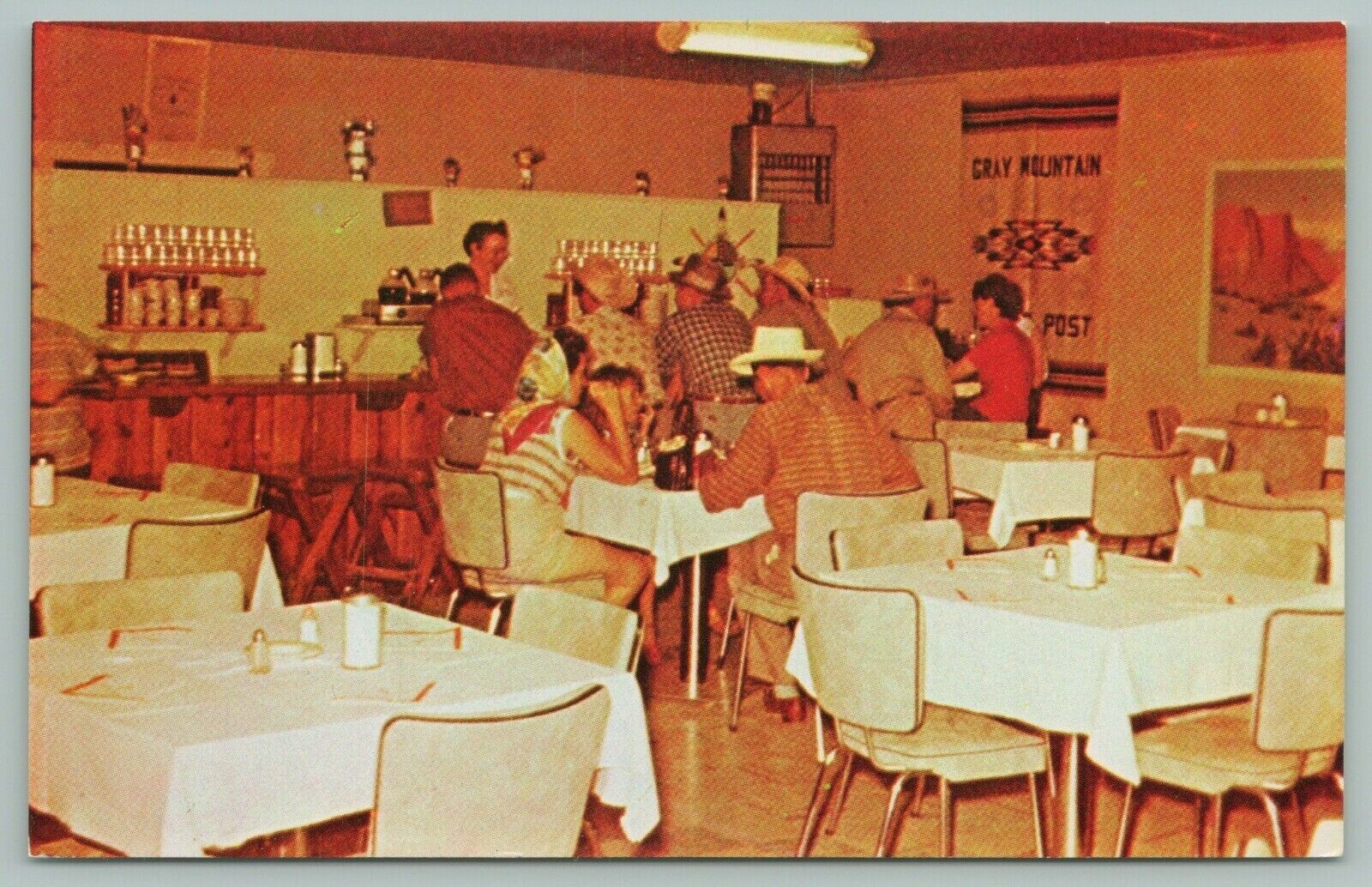 Gray Mountain Arizona~Trading Post~Restaurant~Interior~Cowboy Hats~Bar~1950s