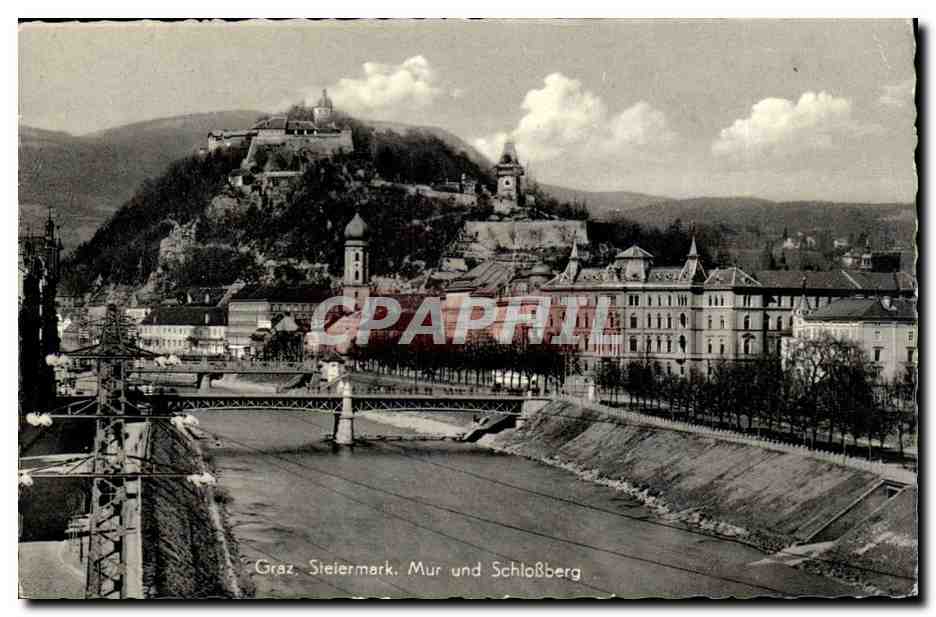 Graz - Steiermark - Mur und Schlossberg - Old Postcard