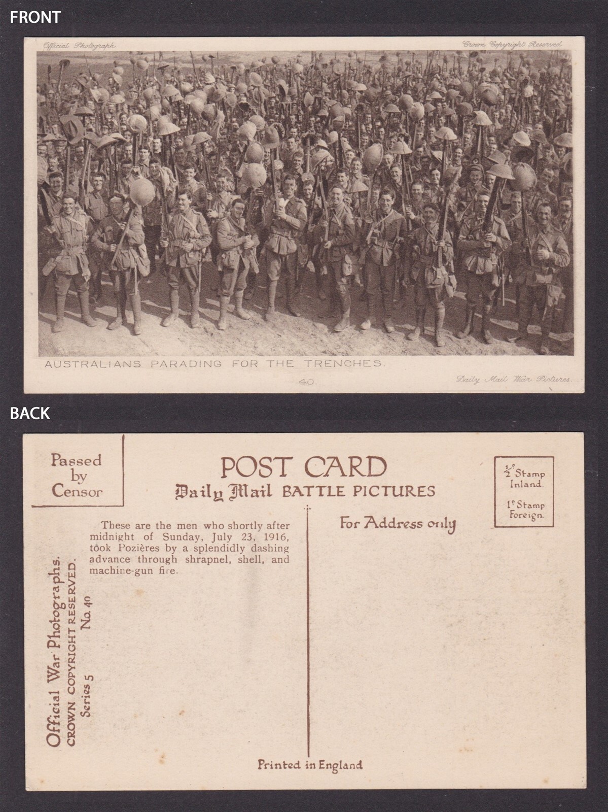 GREAT BRITAIN, Postcard, Australians parading for the trenches, WWI