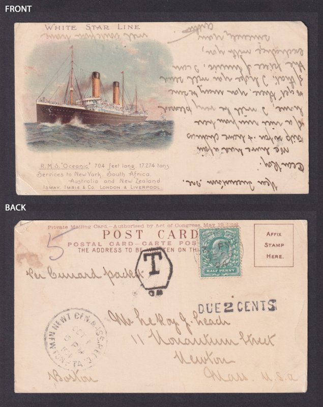 GREAT BRITAIN, Postcard Postage Due, Steamer White Star Line OceanicSeller Information