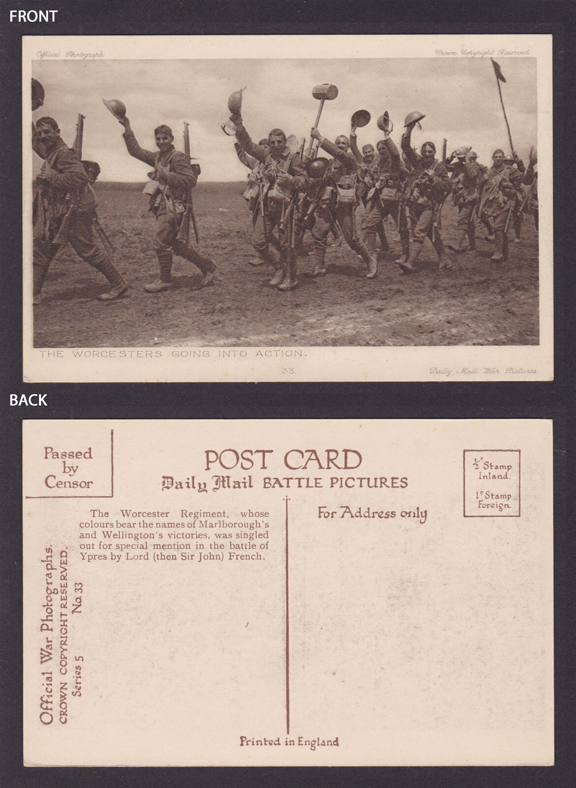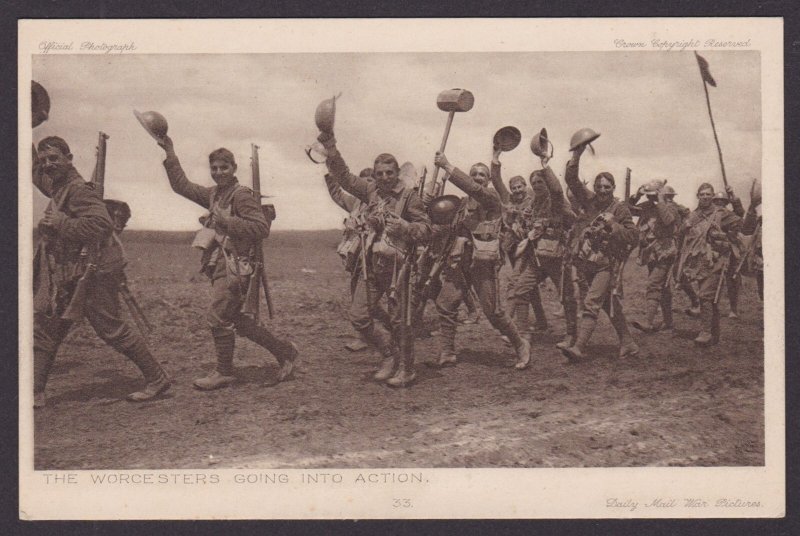 GREAT BRITAIN, Postcard, The Worcesters going into action, WWI