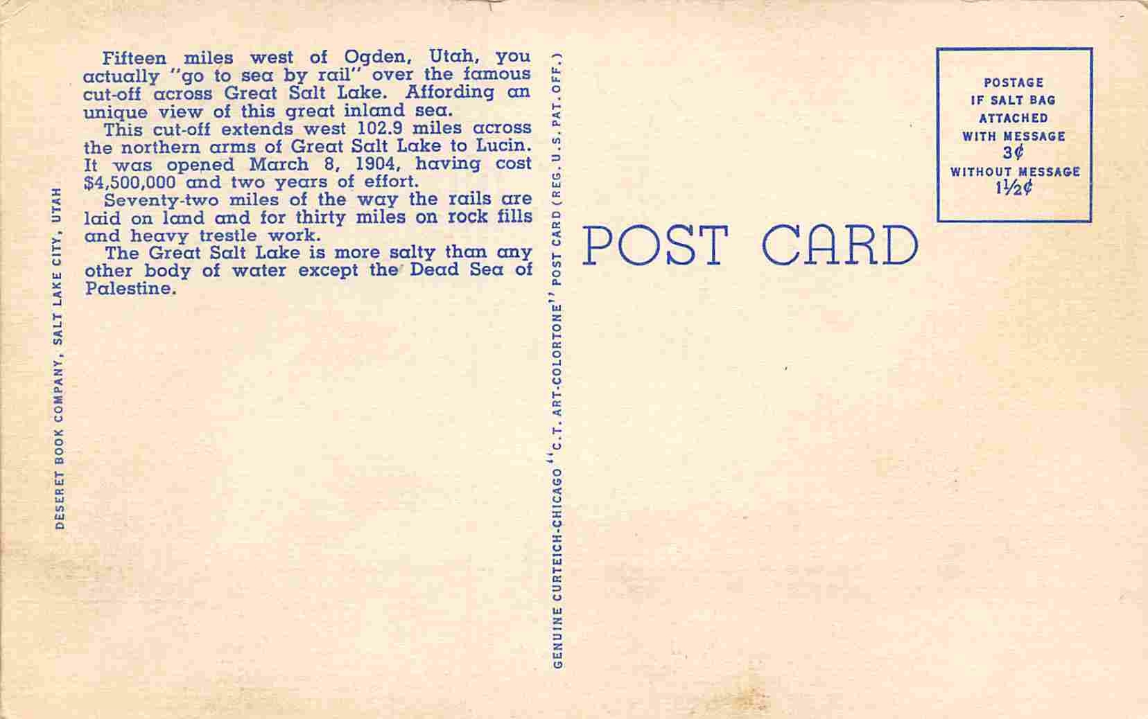 Great Lakes Streamliner Railroad Train Utah linen postcard