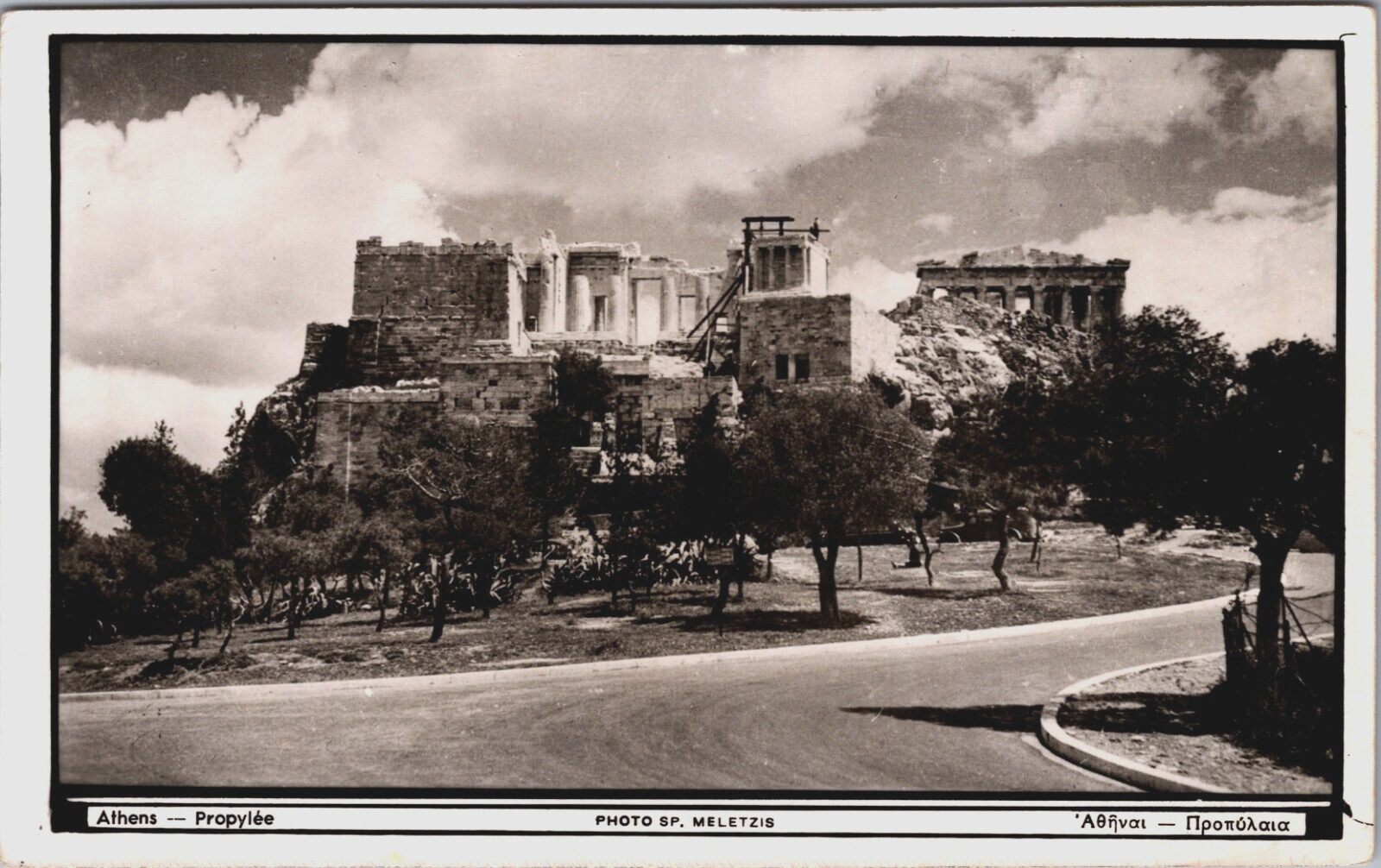 Condition: Look at the pictures for quality. The lines are from the scanner. This vintage real photo postcard features the Propylaea in Athens, Greece. The postcard is standard size (5.5 x 3.5 in) and made of pape ... Read More