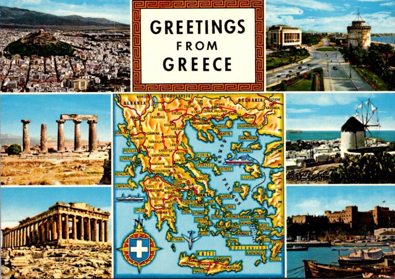 Greece Greetings With Map and Multi View