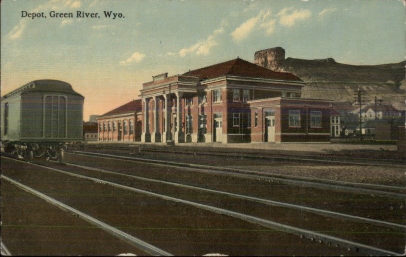 Green River WY RR Railroad Train Depot Station c1910 Postcard