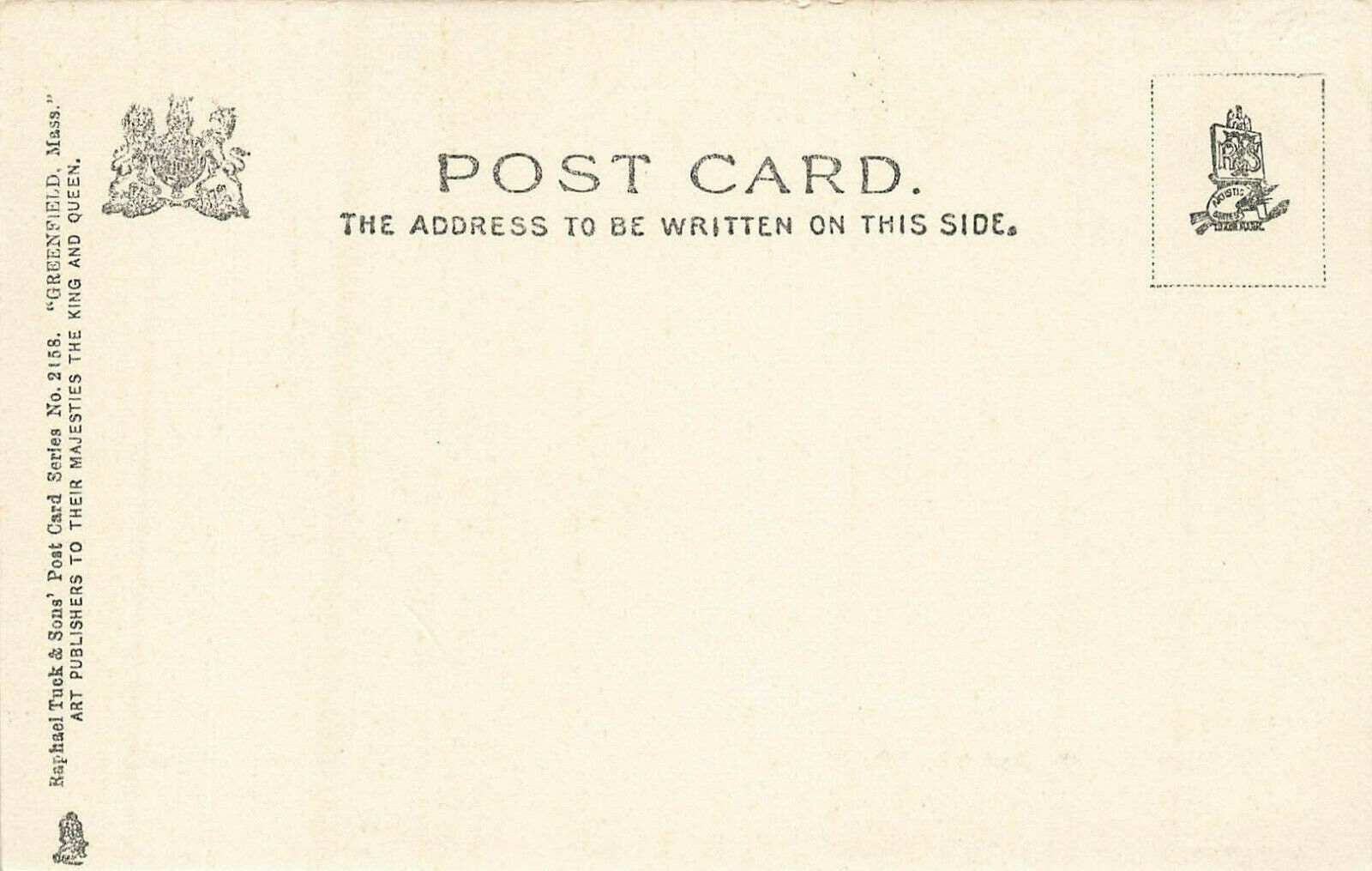 Greenfield ma mansion house storefronts, raphael tuck, postcard.
