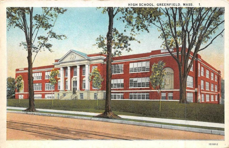 GREENFIELD, Massachusetts~MA HIGH SCHOOL Franklin County c1920's Postcard