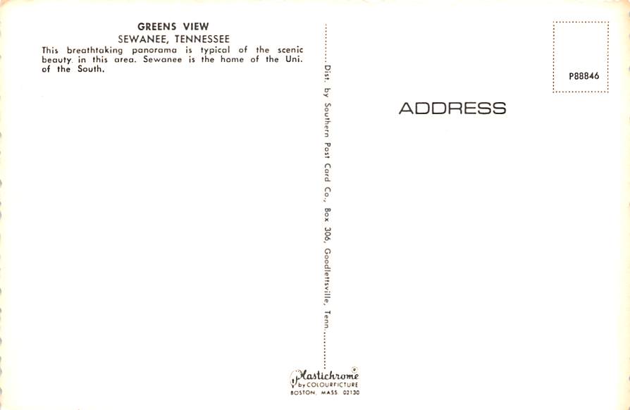 Greens View - Sewanee, Tennessee Continental Size Postcard, Approx 4 in x 6 in (10 cm x 15.25 cm) Continental Size: 4X6 inches (10.5 cm x 15 cm)
