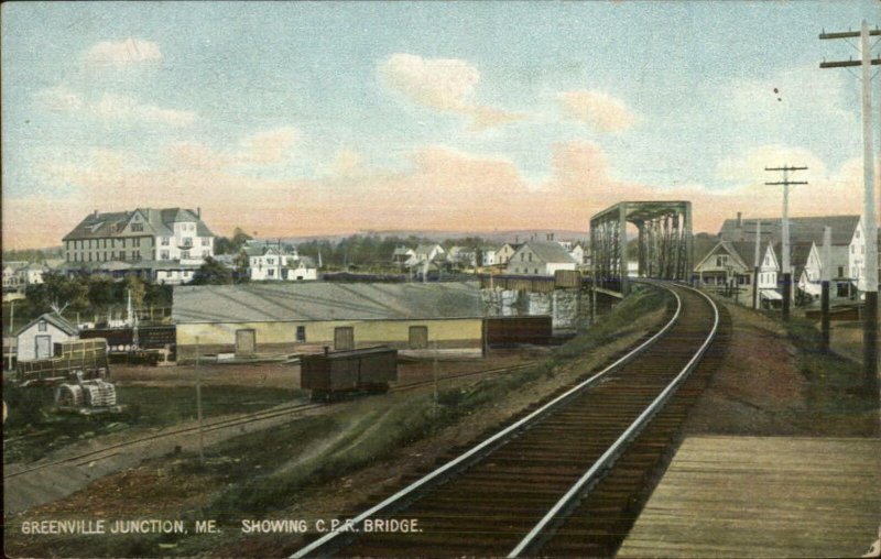 Greenville Junction ME CPR RR Train Bridge c1910 Postcard
