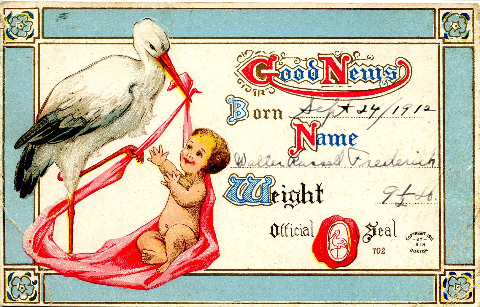 Greeting - Birth Announcement (soiled, crease)