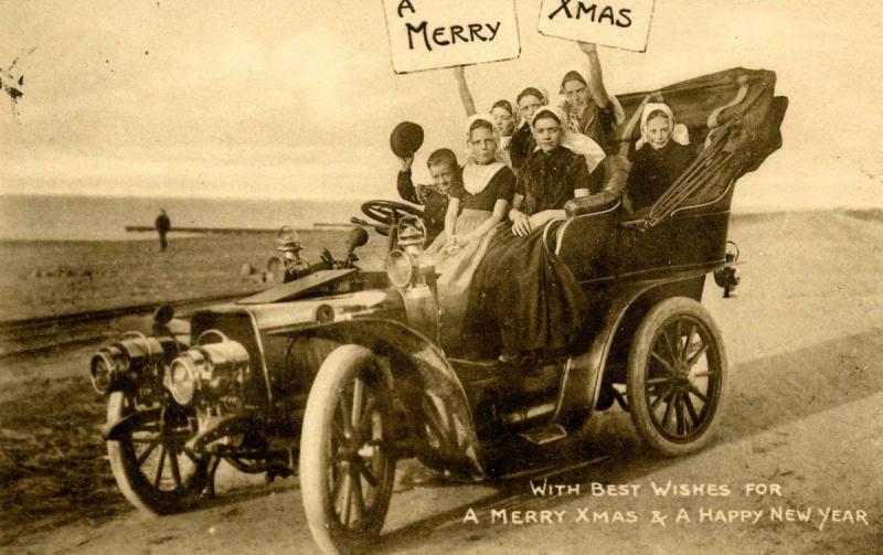 Greeting - Christmas, Old Auto with Children *RPPC