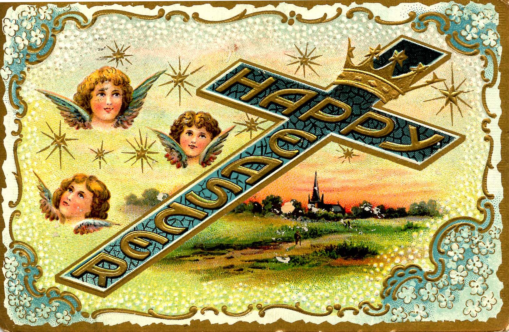 Greeting - Easter. Angel Heads (chipping)