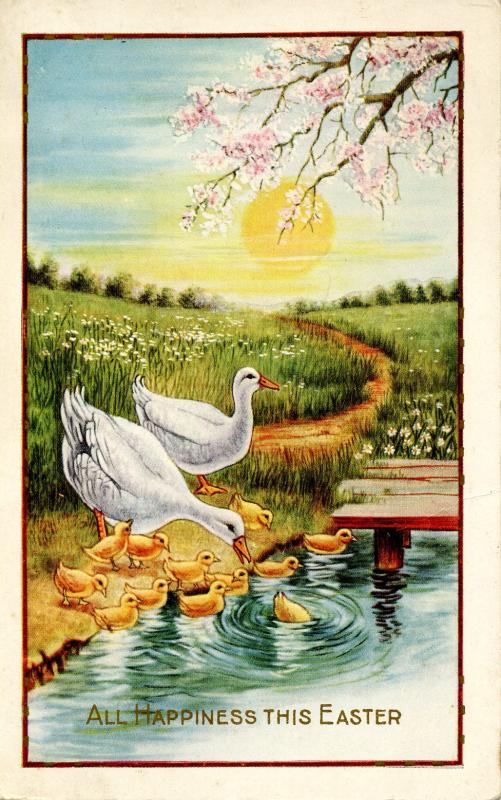 Greeting - Easter. Ducks and Ducklings