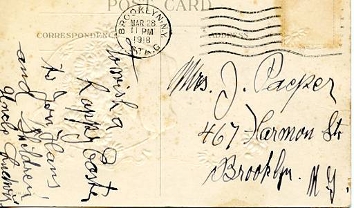 Greeting - Easter --- VG, PU, DB, EMB, WOB, PM 1918