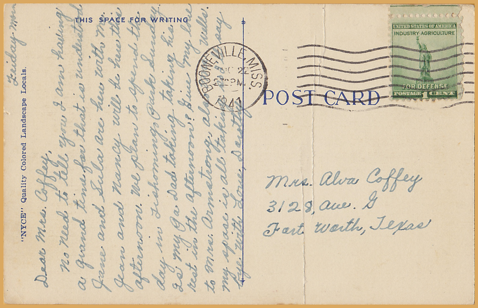 Please check out the awesome photographs for actual condition of this card. If you have any questions about this or any of my cards please feel free to contact me. *** See awesome photos for condition - Postmarked Booneville, MISS., DEC 22, 1941 **