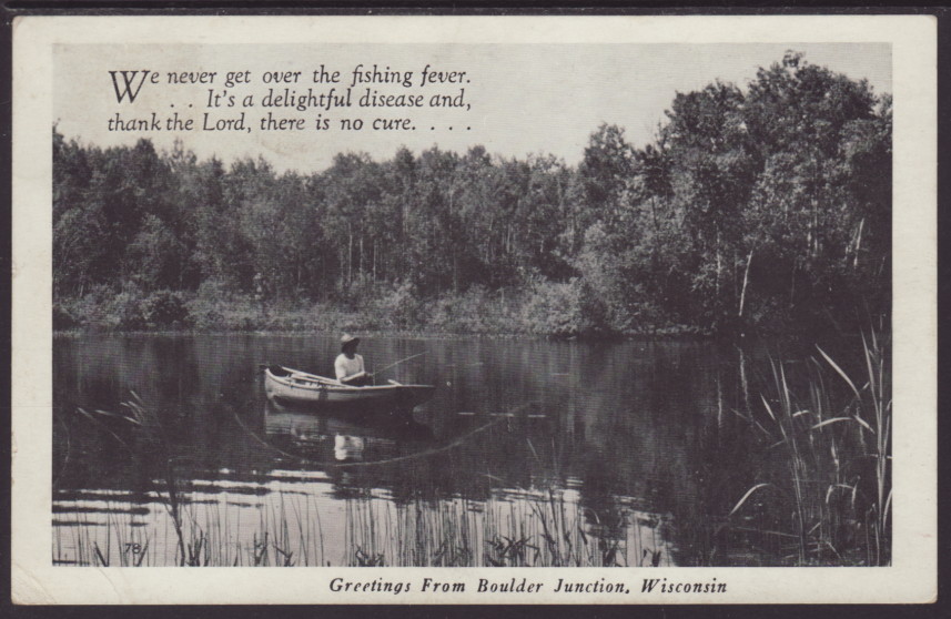 Greetings From Boulder Junction,WI Fisherman Postcard