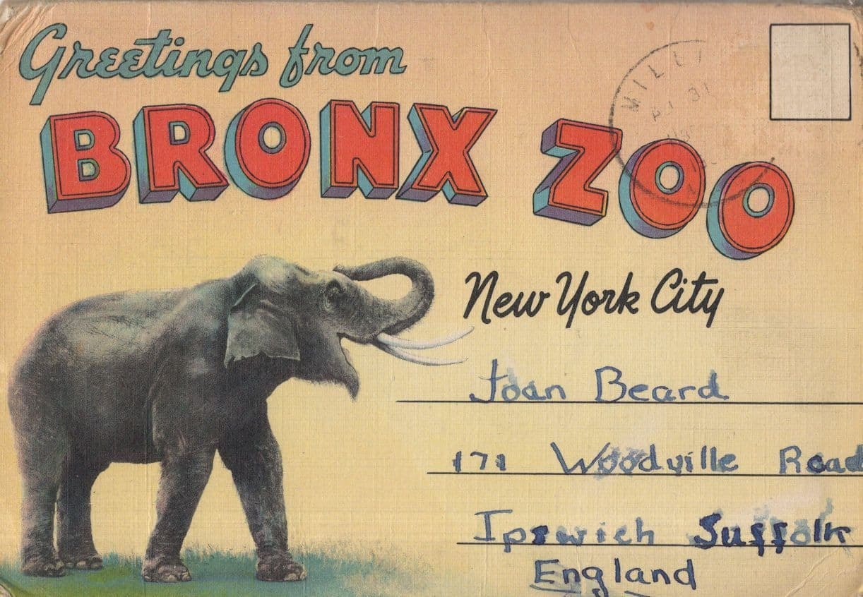 zx298 A vintage folding postcard book and official souvenir circa 1950s from Bronx Zoo with some corner fraying postally used just to outer envelope but very good condition indeed with inside contents and all foldi ... Read More