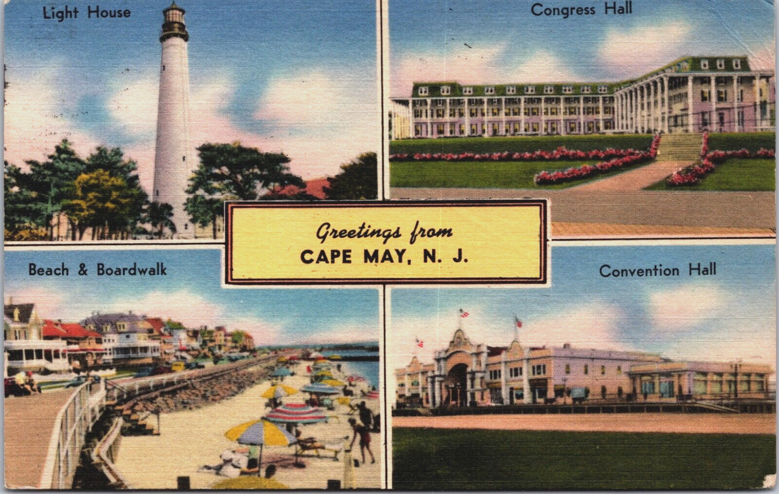 Greetings From Cape May New Jersey Linen Postcard C201