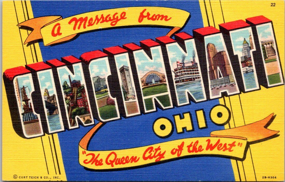 Greetings From Cincinnati Ohio Large Letter Linen Curteich