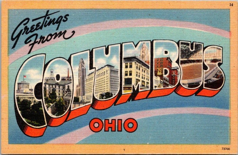 Greetings From Columbus Ohio Large Letter Linen