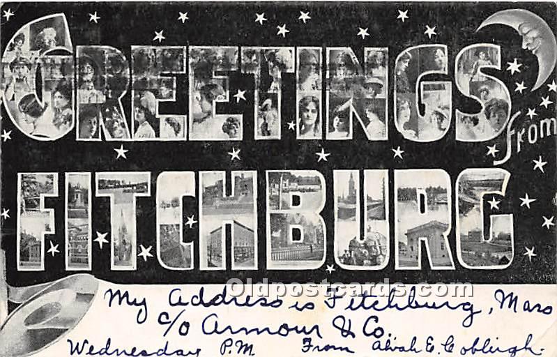 Greetings from Fitchburg Large Letter Postcard 1908,