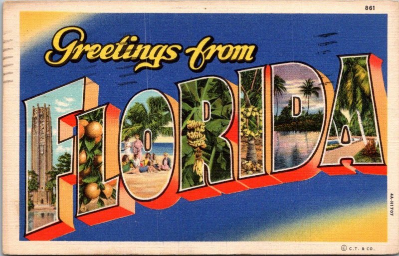 Greetings From Florida Large Letter Linen 1936 Curteich