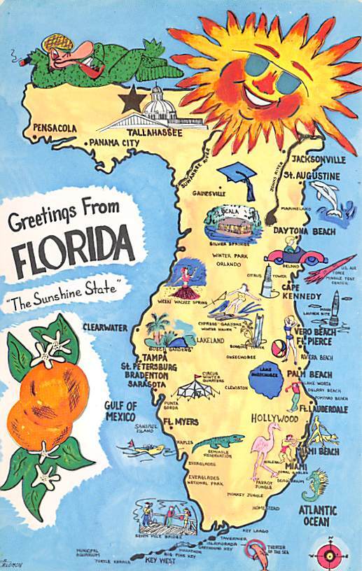 Greetings from Florida, USA Map Postcard
