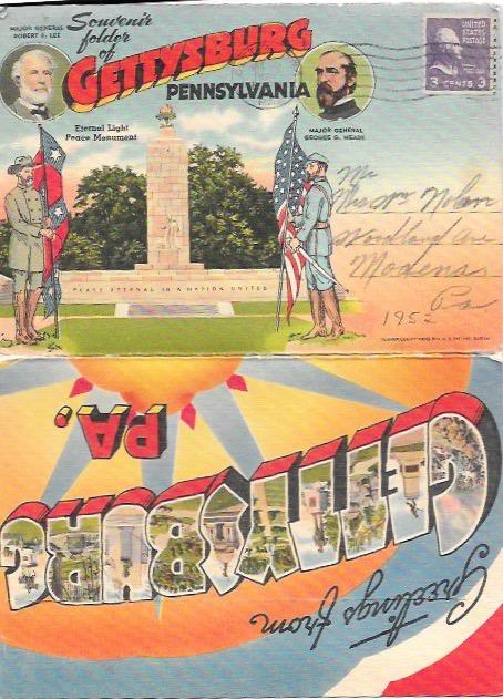 Greetings from Gettysburg Souvenir Folder. 1952 Stamp # 842 coil