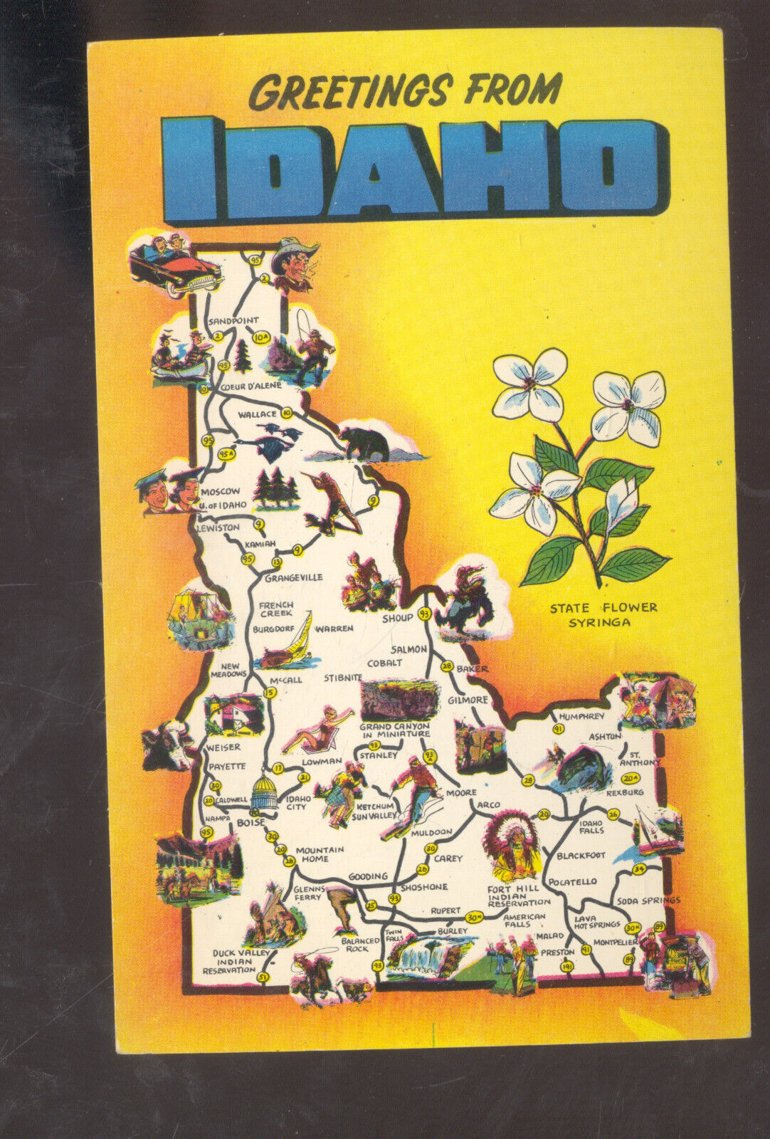 GREETINGS FROM IDAHO STATE MAP VINTAGE POSTCARD