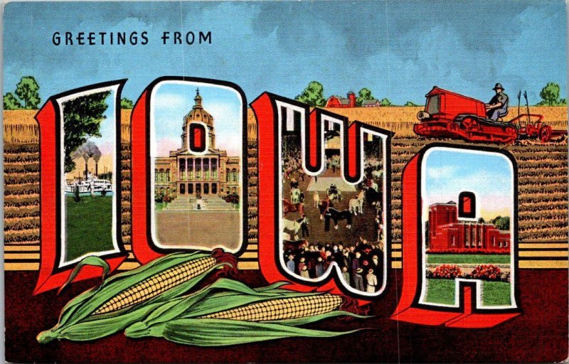 Greetings From Iowa Large Letter Linen Curteich