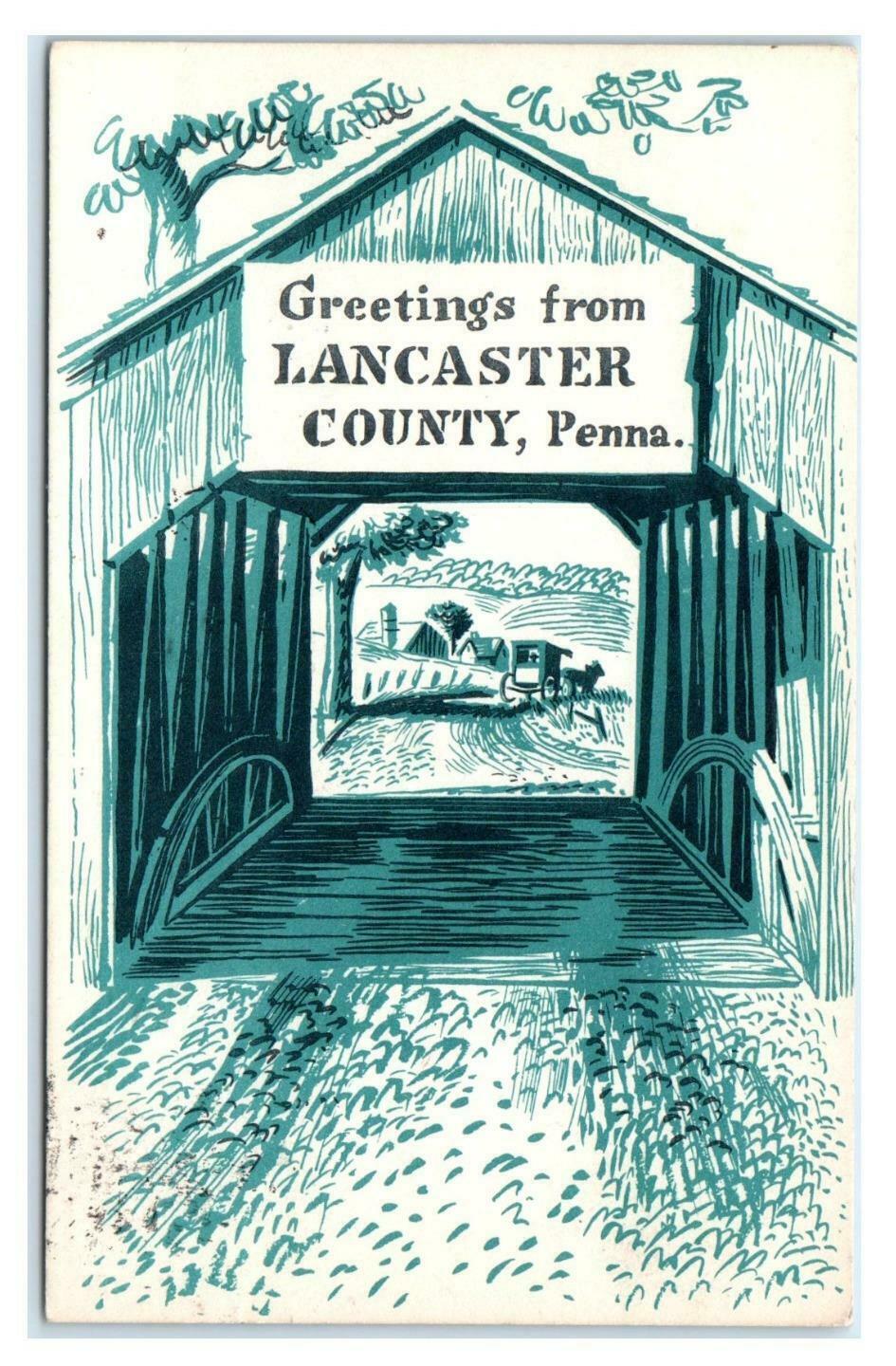 Greetings from LANCASTER COUNTY, Pennsylvania PA ~ COVERED BRIDGE 1958 Postcard