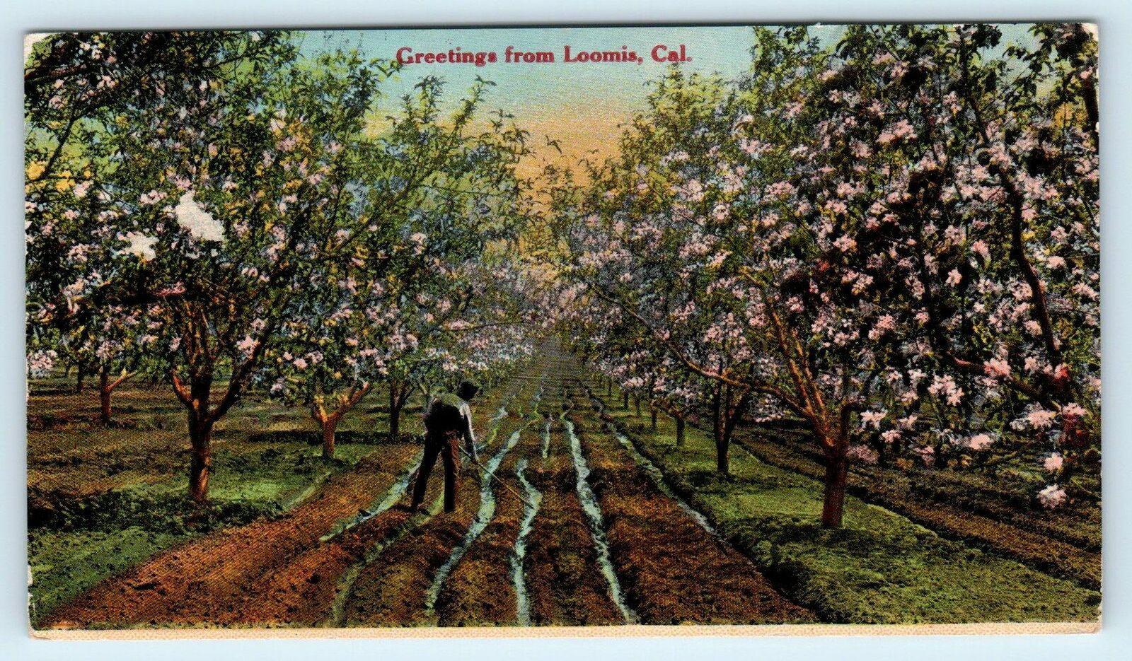 GREETINGS from LOOMIS, CA California FRUIT ORCHARD Scene c1910s Postcard