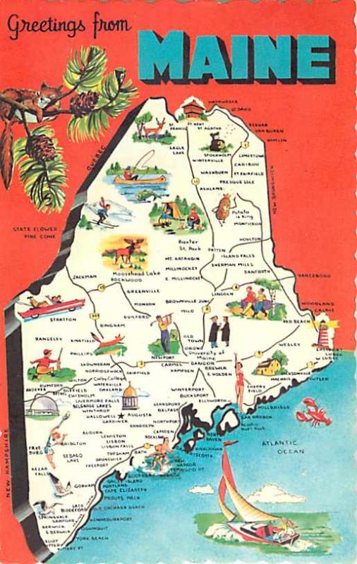 GREETINGS FROM MAINE MAP POSTCARD ME 1969Type of Postcard: STANDARD SIZE CHROME