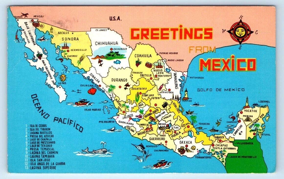 Greetings from MEXICO illustrated map Postcard